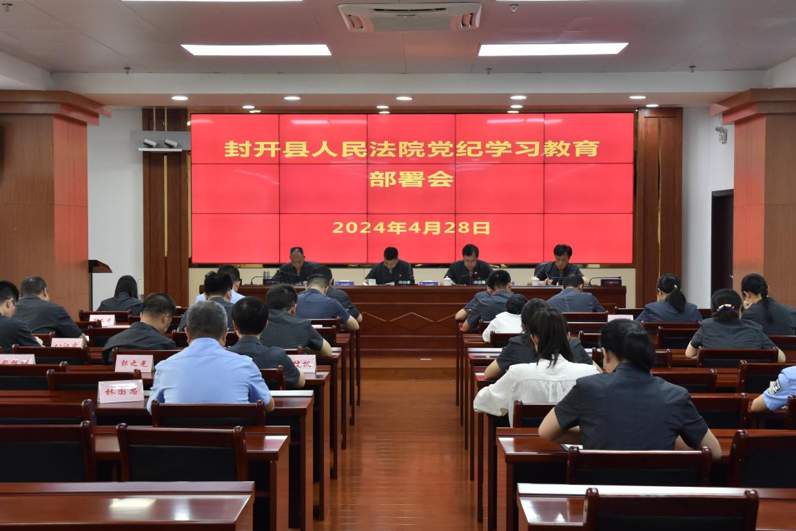 4月28日,封开县人民法院召开党纪学习教育部署会。会议传达了习近平总书记关于党纪学习教育的重要讲话和重要指示精神,中央及省委、市委、县委党的建设工作领导小组会议和中央办公厅《关于在全党开展党纪学习教育的通知》精神,宣读了我院《关于开展党纪学习教育的实施方案》。